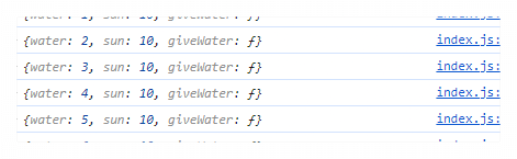 콘솔에 출력된 this를 확인해보면, plant 객체가 나오고 water 값도 잘 증가하는 것을 확인할 수 있습니다.