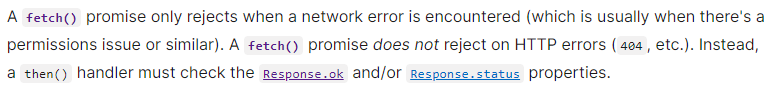 에러 처리는 후속 처리 메소드 catch 대신 try...catch 문을 사용하면 됩니다. catch는 try 블록에서 예외가 발생하면 실행되며, 후속 처리 메소드와 달리 HTTP 에러도 처리합니다.