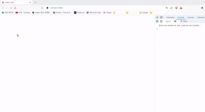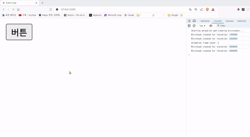 위 코드를 실행하면 버튼이 움직이면서 Microtask도 수행하고 있음을 확인할 수 있습니다.