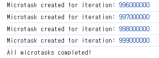console.log("Microtask created for iteration:", endIteration);