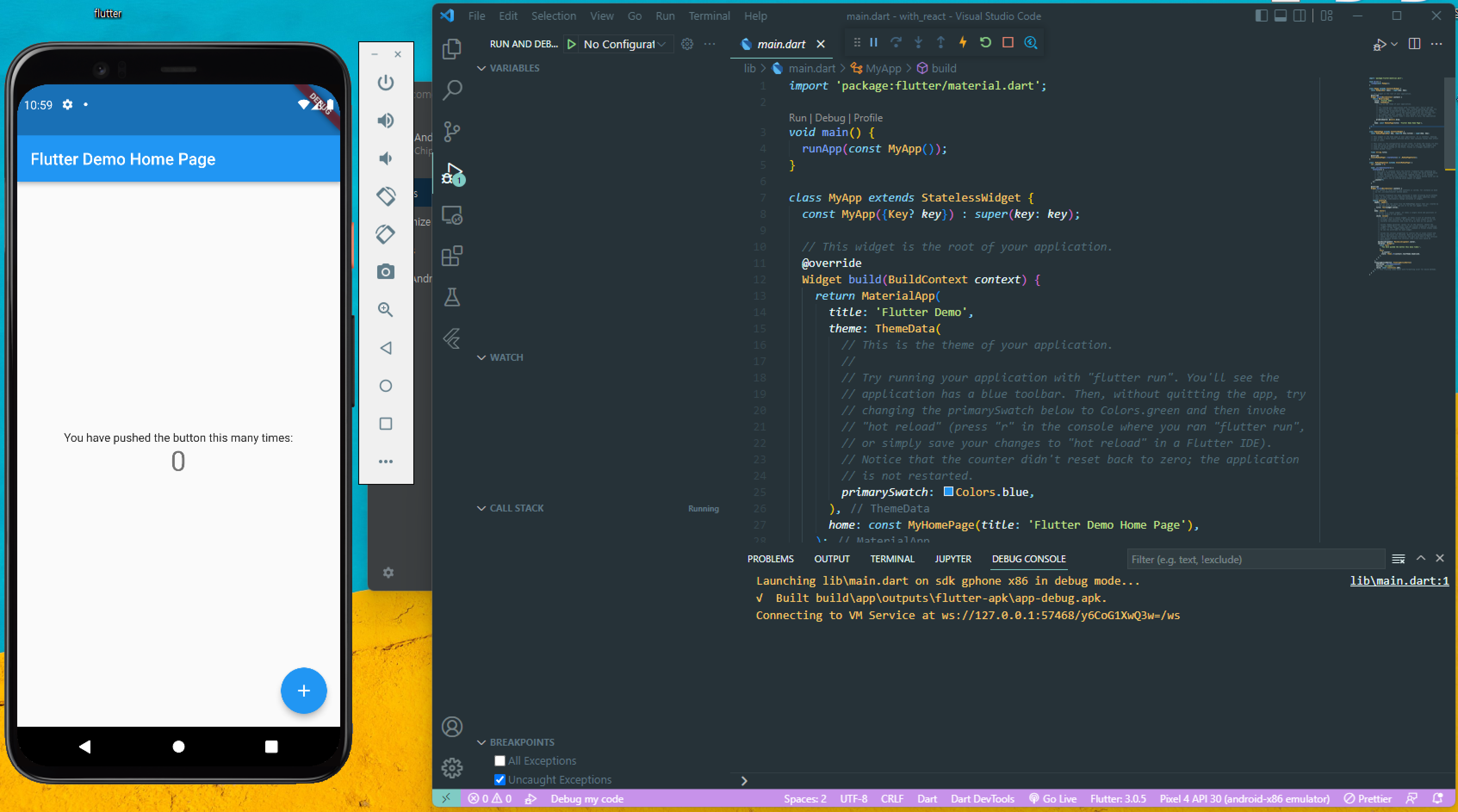 - 장치가 켜지면 VS Code에서 F5를 눌러 코드를 실행합니다. 좀만 기다리면 왼쪽 장치에 화면이 나타나는 걸 볼 수 있습니다! (만세)