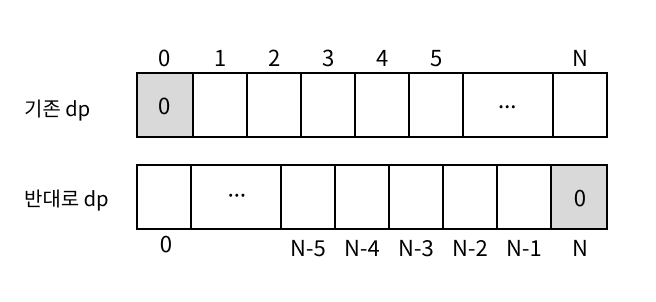 - dp에 거꾸로 저장할 때는 입력받은 N개의 데이터를 0 ~ (N-1)에 저장한다.